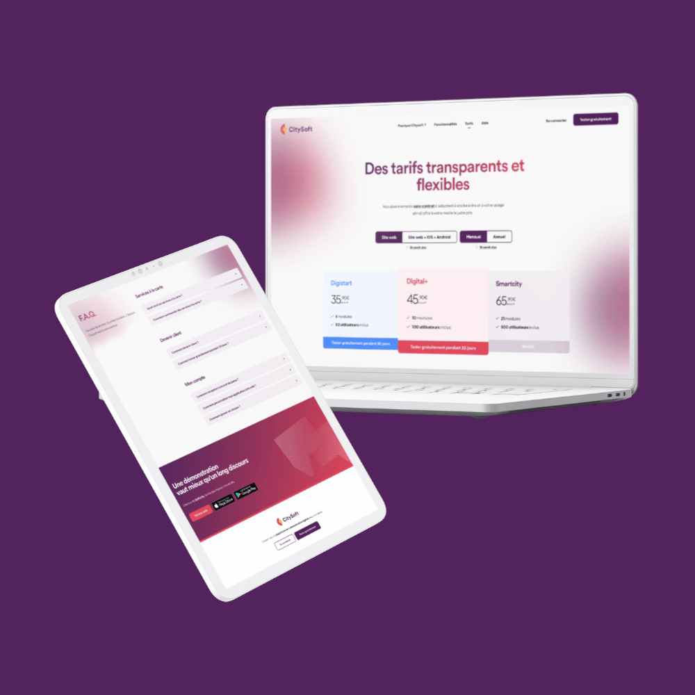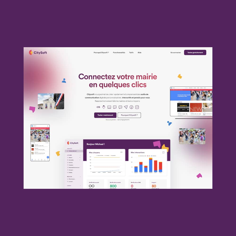 Réalisation de l’identité visuelle et du site web vitrine de Citysoft, l’outil de communication pensé pour les mairies.